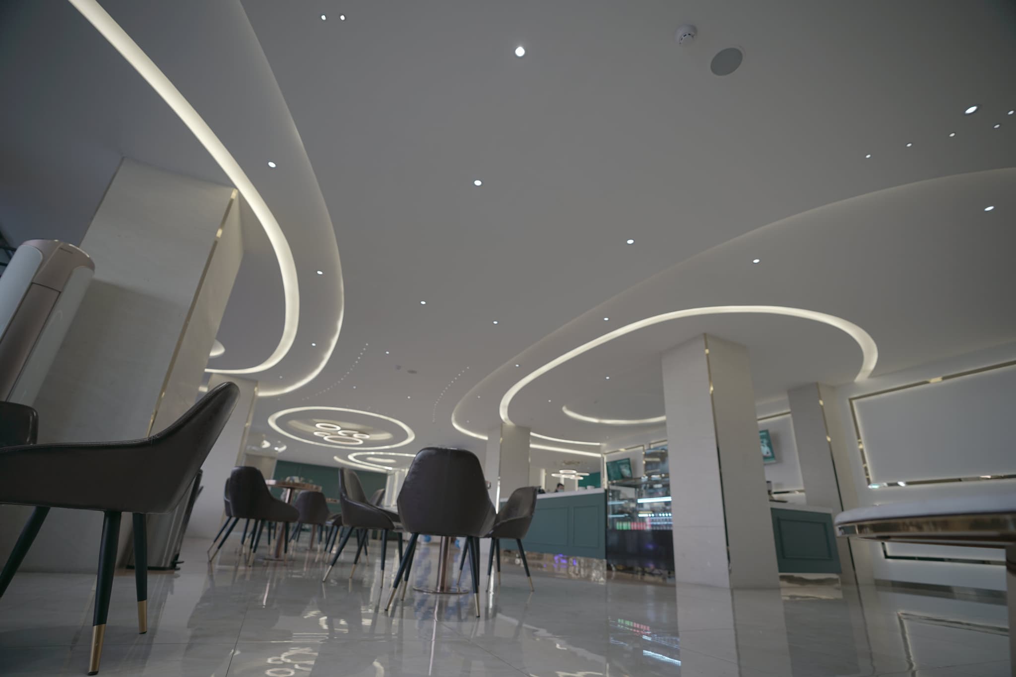 The coffee shop, open from 07:00 to 23:00 for business people, serves coffee prepared by skilled bartenders and tastes pastries and desserts made by the restaurant's chef.