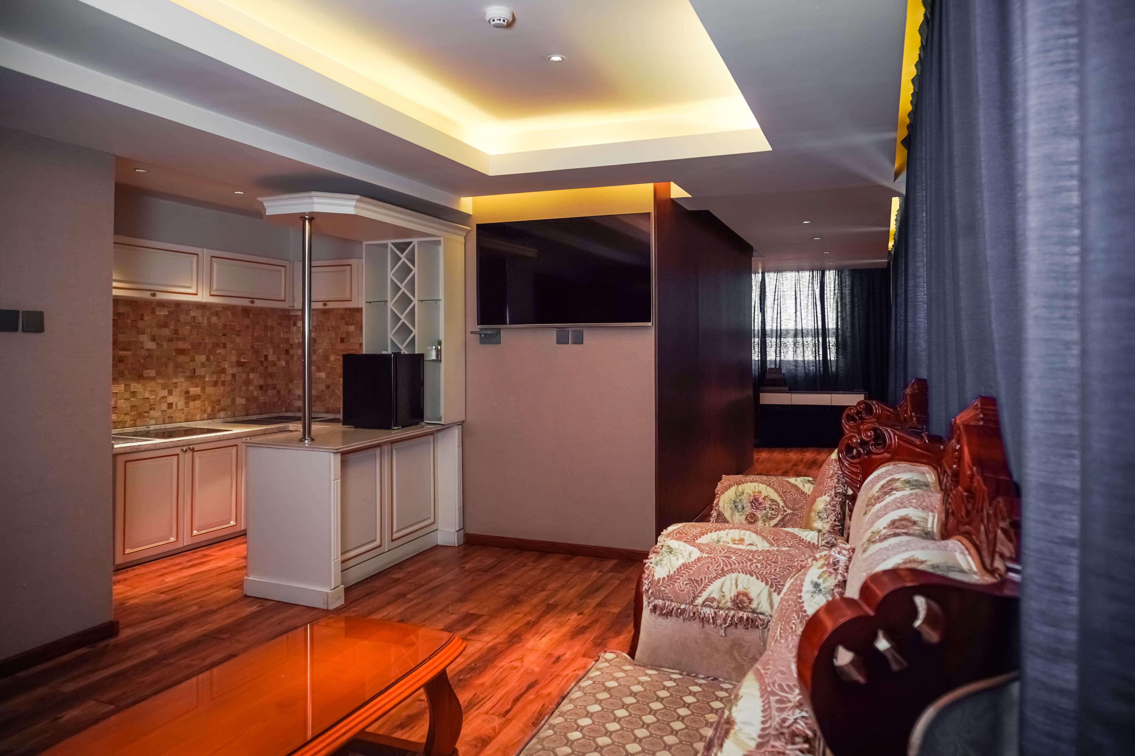 A mini-kitchen and a separate living room will relax you, creating family comfort and relaxing for many days.